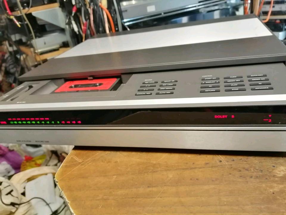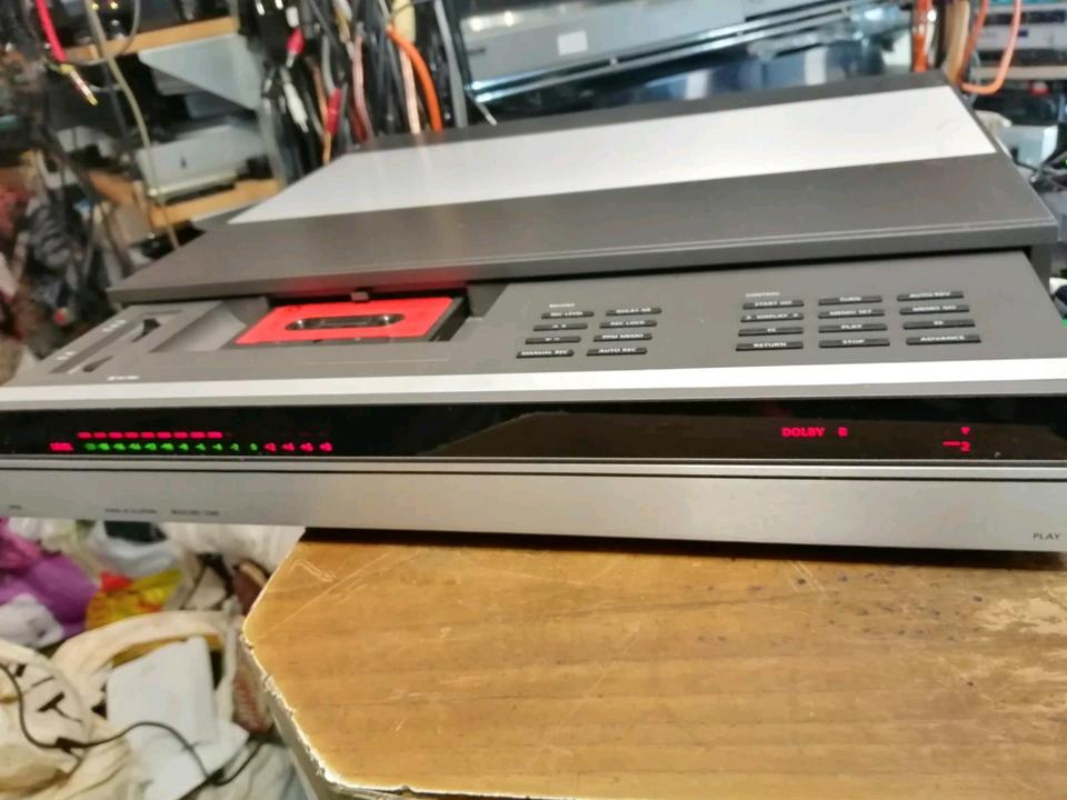 Das ist ein toller und schöner Cassetten-Recorder von BANG & OLUFSEN. Funktioniert sehr gut. PLAY leiert etwas. Es muß der Antriebsriemen gewechselt werden. Ein NEUER Antriebsriemen liegt dabei!!!