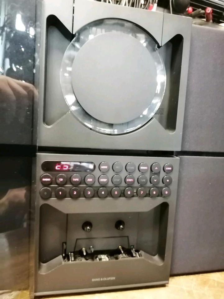 Dies ist eine tolle und schöne Anlage von BANG & OLUFSEN (Cassetten-Deck/CD-Player/Radio) in einem Gerät!! Mit integrierten Lautsprecher.