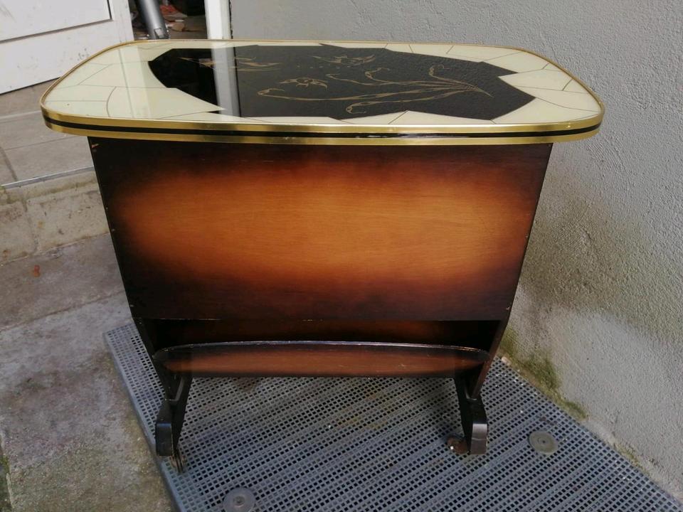 Maße: hoch: 54 cm; lang: 55 cm (Tischplatte) und tief: 31,5 cm