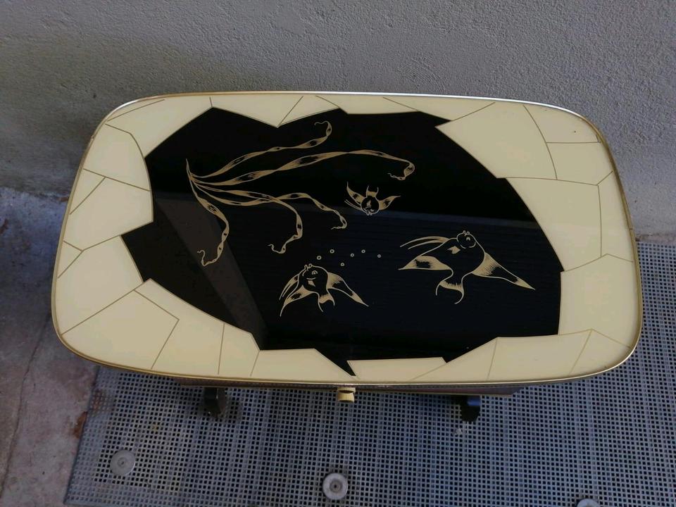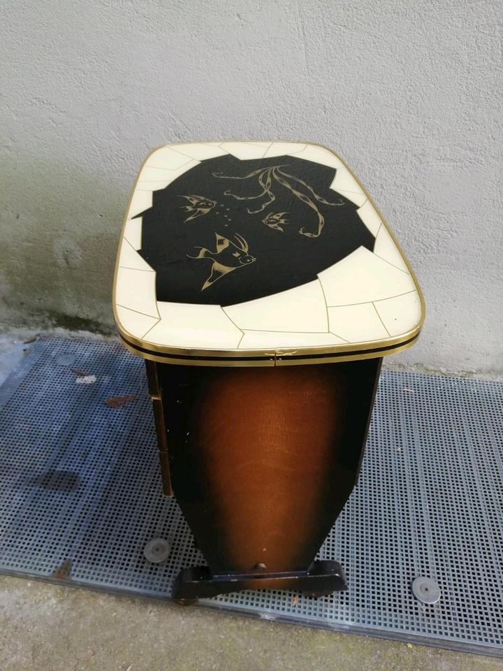 Der Tisch sieht insgesamt gut aus. Hat einige Gebrauchsspuren!!