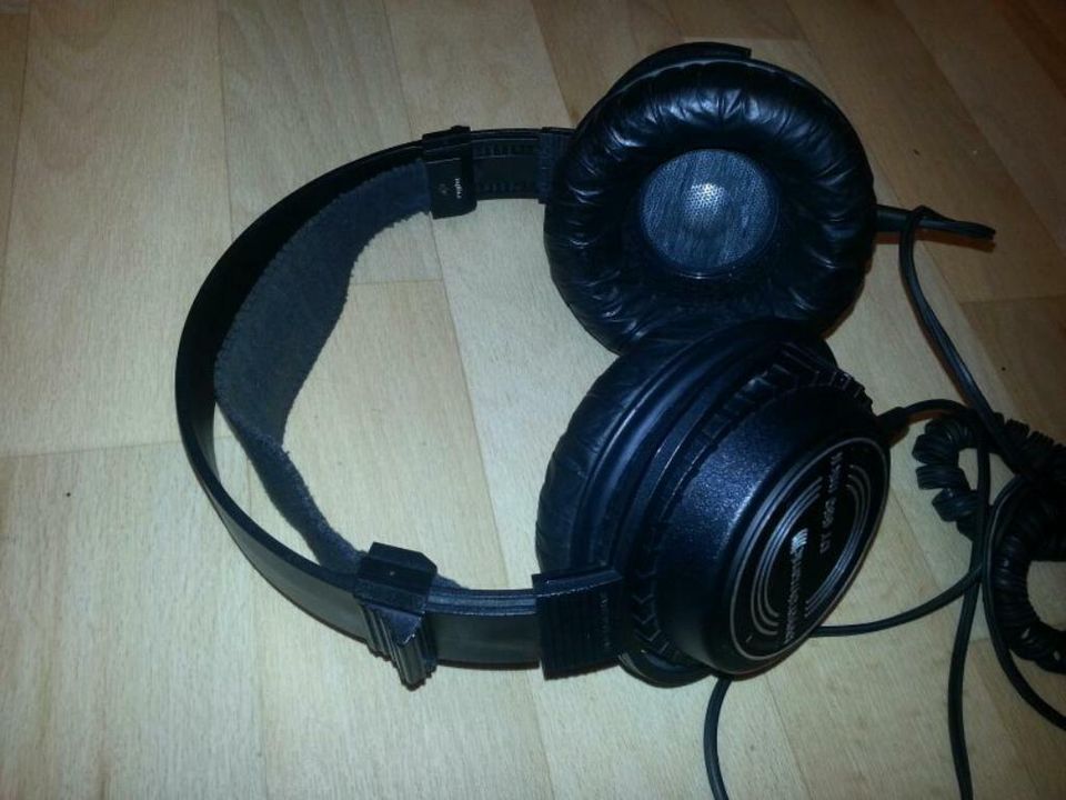 Das sind gut funktionierende Kopfhörer von BEYERDYNAMIC. Mit einem Spiralkabel mit 3,5 mm Klinke-Stecker. Das Kabel ist an einer Stelle geflickt (siehe Foto ). Funktioniert trotzdem sehr gut. Ohrpolster sind vorhanden, sind sauber und ohne Risse. Diese tollen Kopfhörer sehen gut aus. Haben nur leichte Gebrauchsspuren.