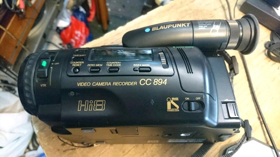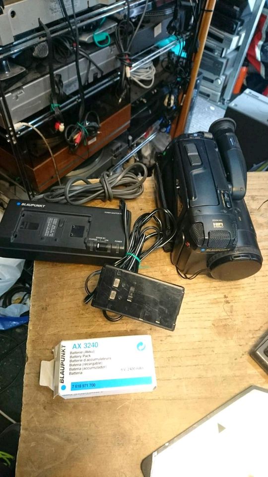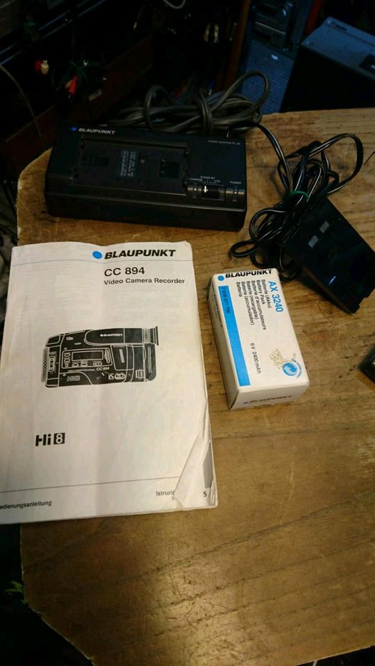 Das ist eine tolle Videocamera von BLAUPUNKT. Hi 8 und Video 8. Funktioniert sehr gut. Mit einem Original-Ladegerät mit Kabel und Akku mit Kabel, 1 Akku (OVP), Beschreibung und 1 Tasche .