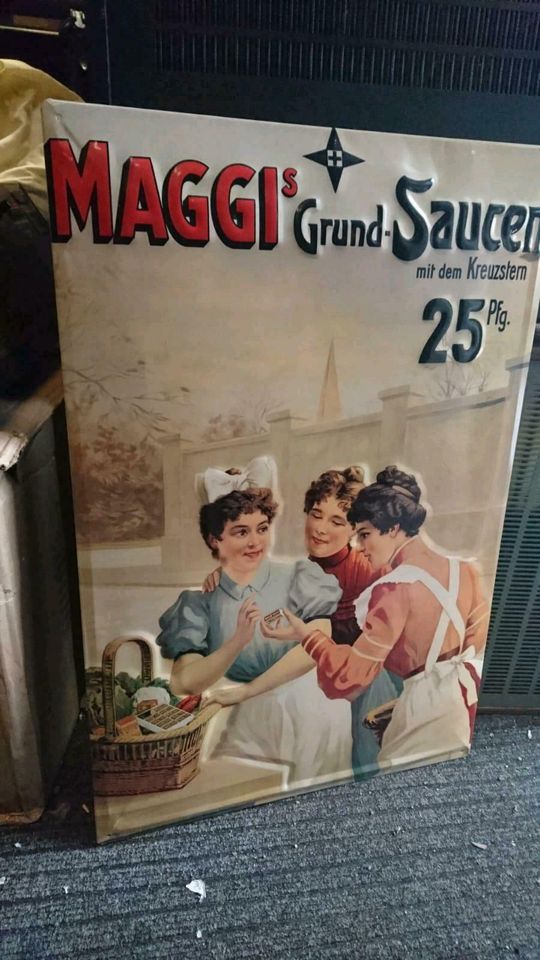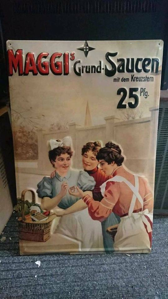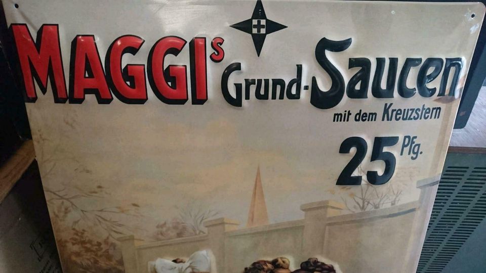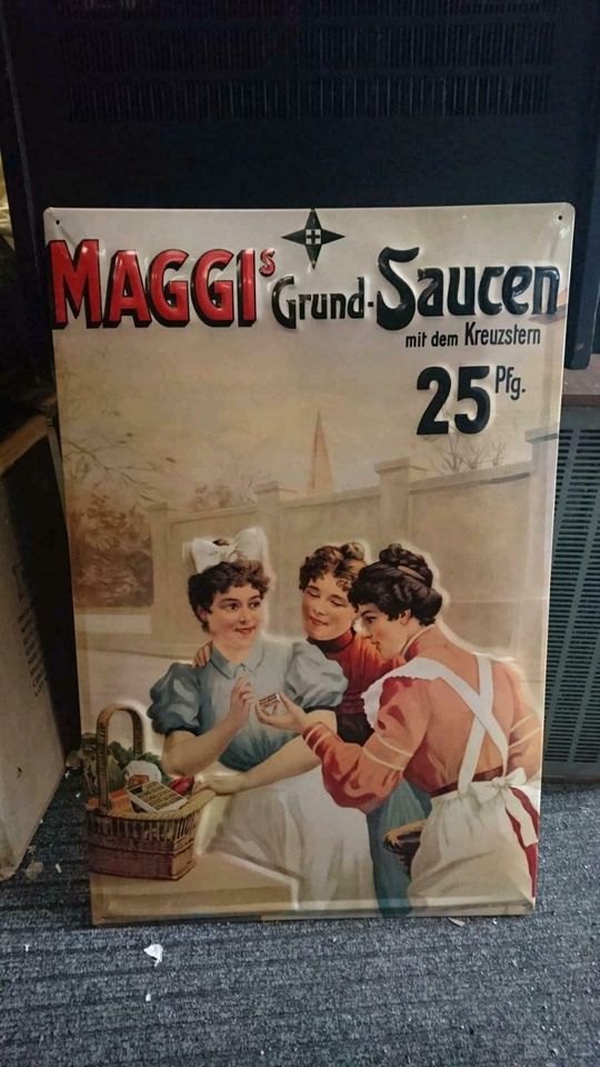 Ein schönes und tolles Blechschild von MAGGIE'S Grund-Saucen mit dem Kreuzstern. Maße: 40 x 60 cm.