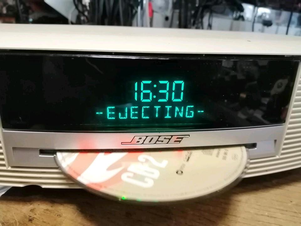 Das ist ein Wave Music System von BOSE. Das Gerät geht an. Die CD geht rein, kommt aber sofort wieder raus und zeigt eine Fehlermeldung an!