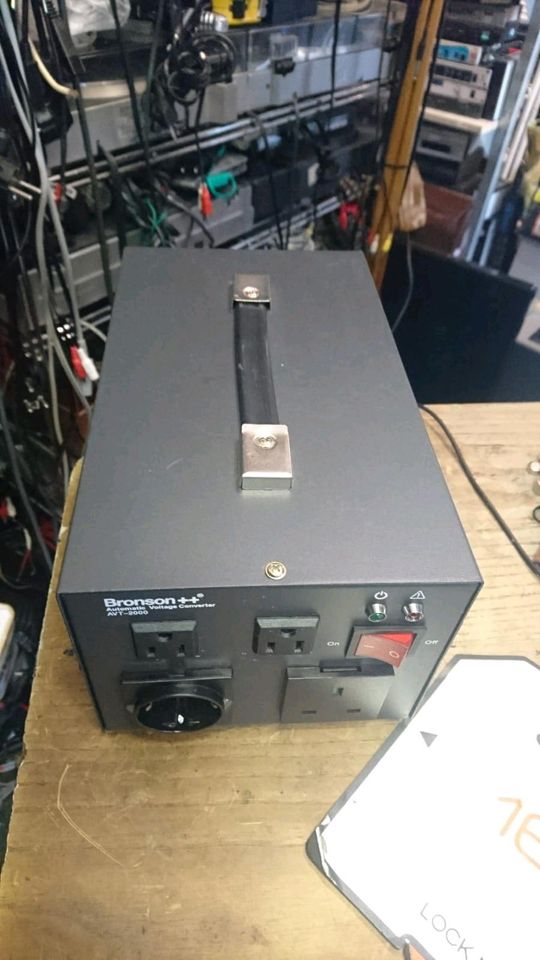 Ein toller Power Transformer von BRONSON. Funktioniert sehr gut. Von 220 V zu 110 V. Mit einem Netzkabel.