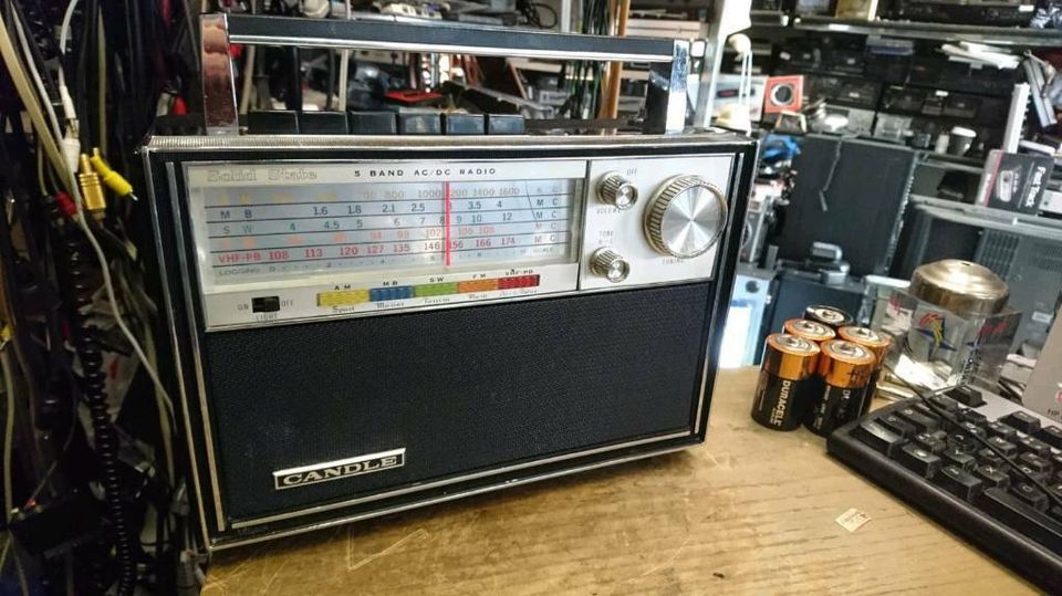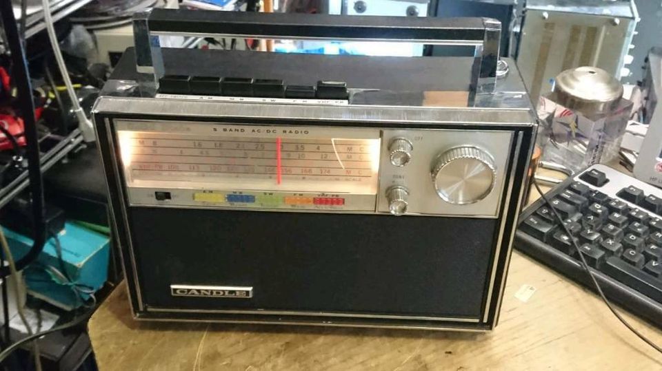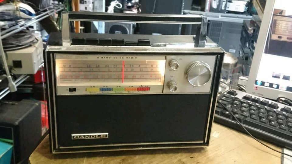 Ein tolles und gut funktionierendes Radio von CANDLE. Das 5 Band AC/DC Radio hat ein festes Kabel. Beleuchtung geht. Batteriefach ist sauber. Antenne ist vorhanden, aber der Antennenkopf fehlt!