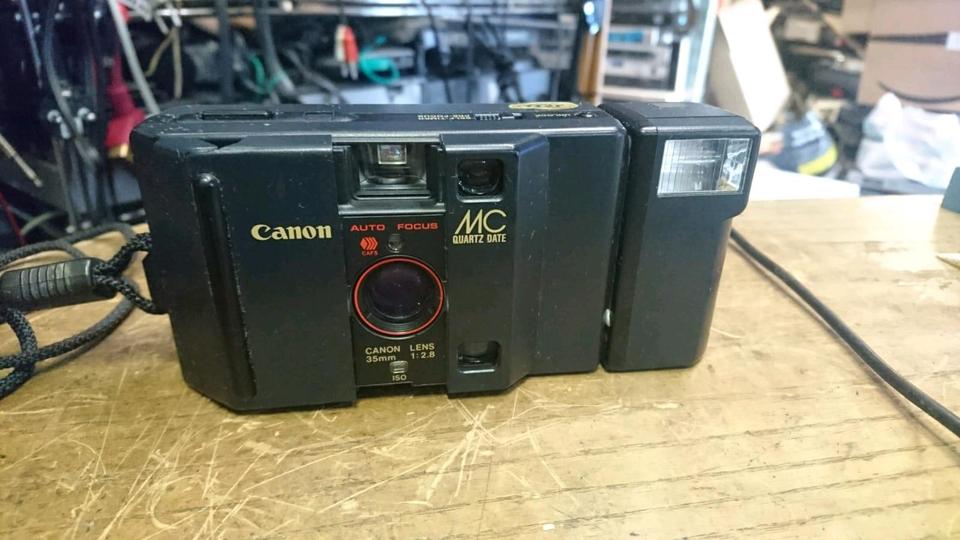 Diese Analog-Kamera ist von CANON. Die Kamera funktioniert sehr gut. Blitz geht auch.