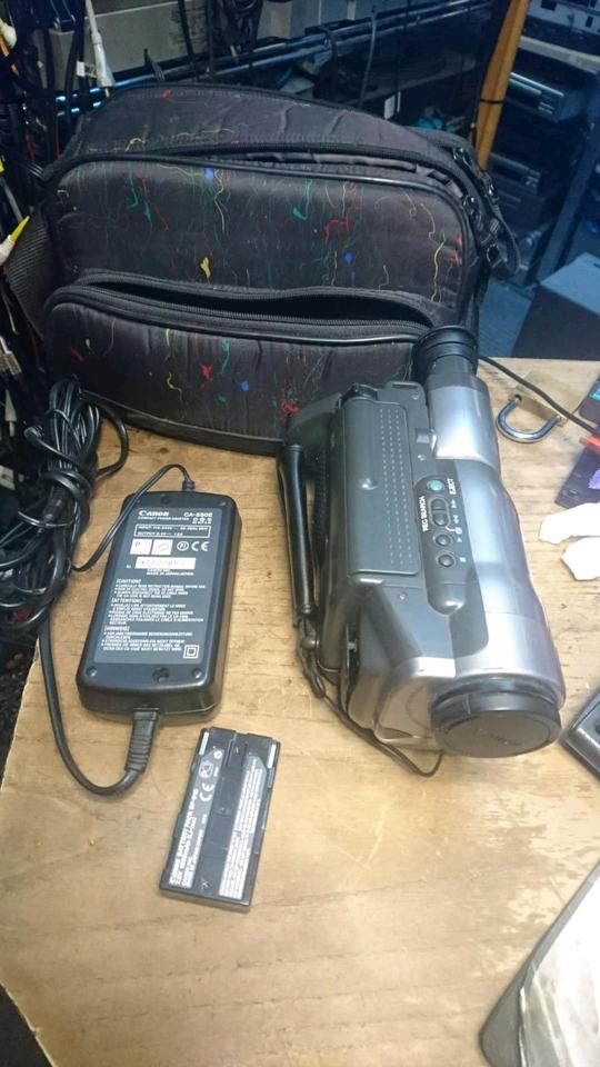 Eine tolle Videocamera von CANON. Hi8 und Video 8. Funktioniert sehr gut. Mit einem Original-Ladegerät, 1 Original-Akku und 1 Tasche.