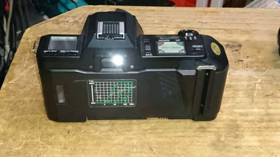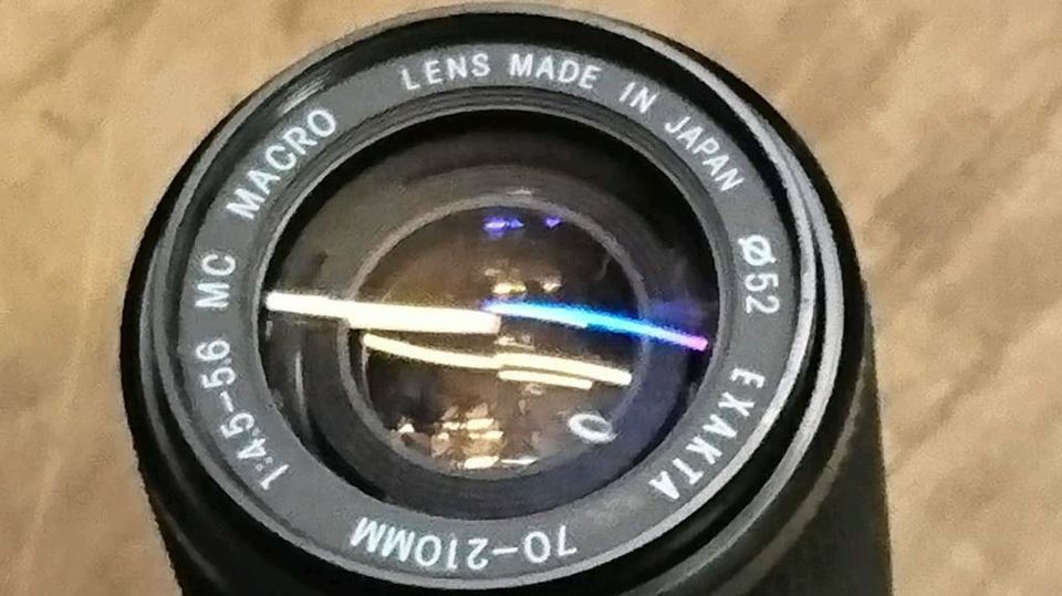 Eine schöne und tolle SLR Analog-Camera von CHINON. Mit CHINON Blitz und 2 Objektive. EXAKTA MC Marco 70-210 MM und AUTO CHINON 1:1.9 50 mm, 1 Tasche und 1 Beschreibung.