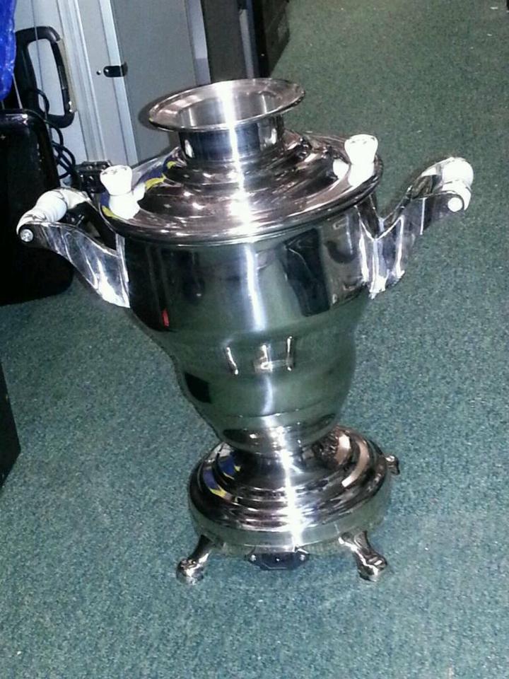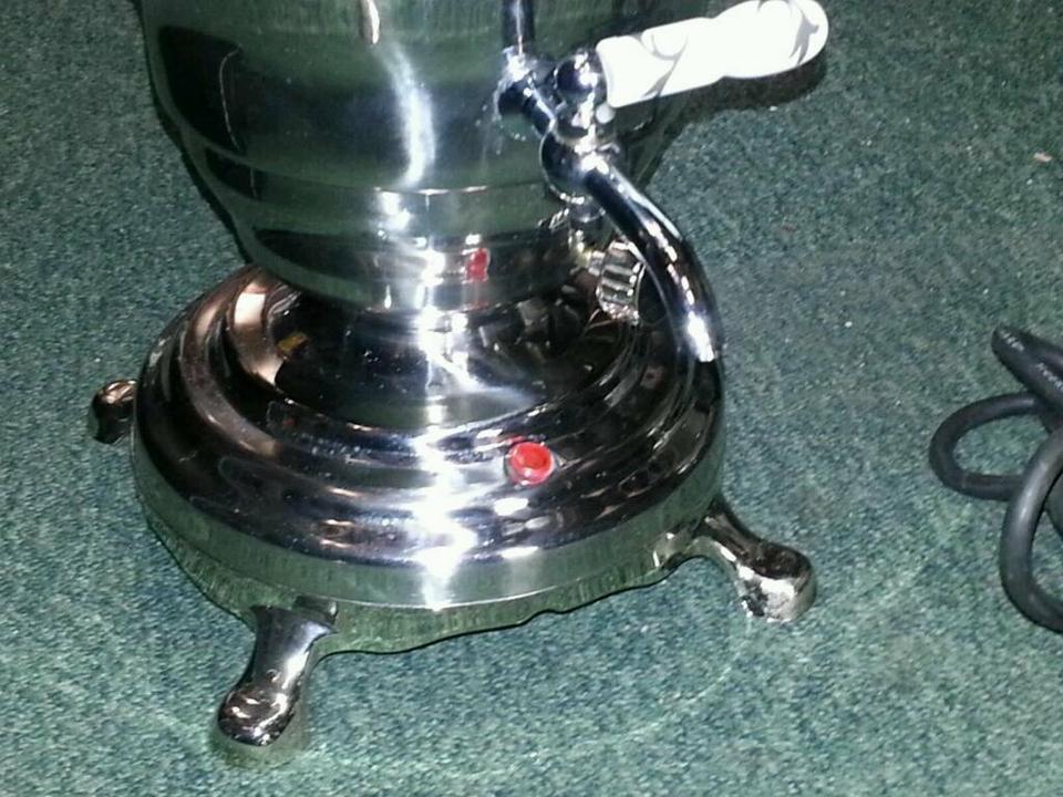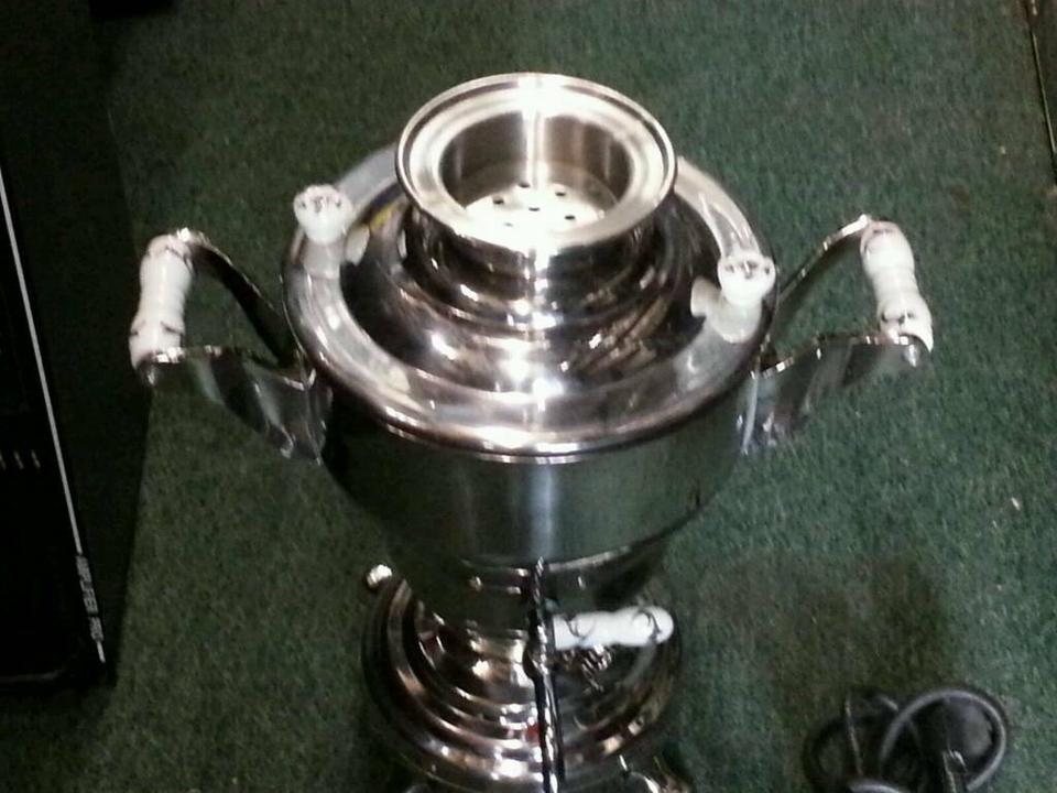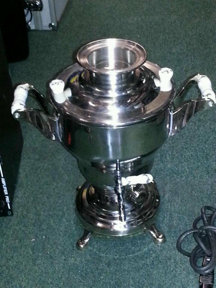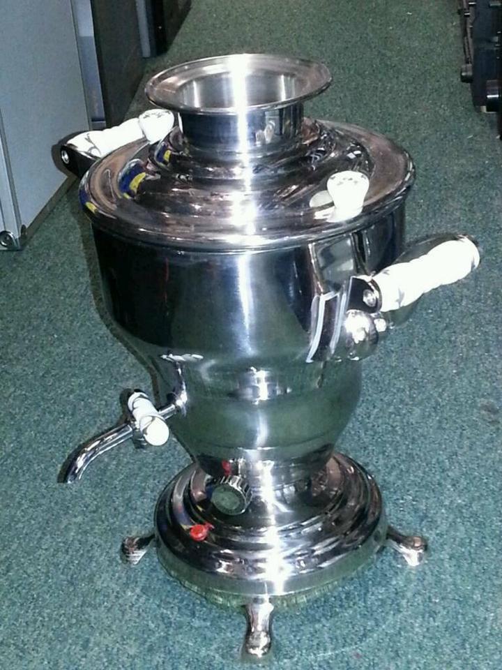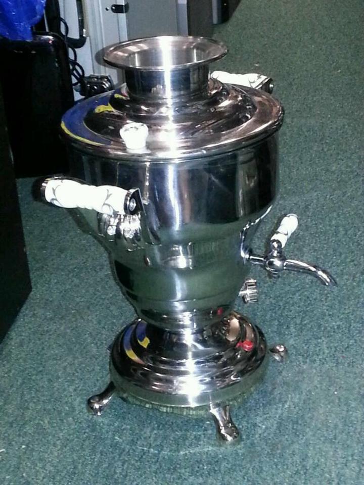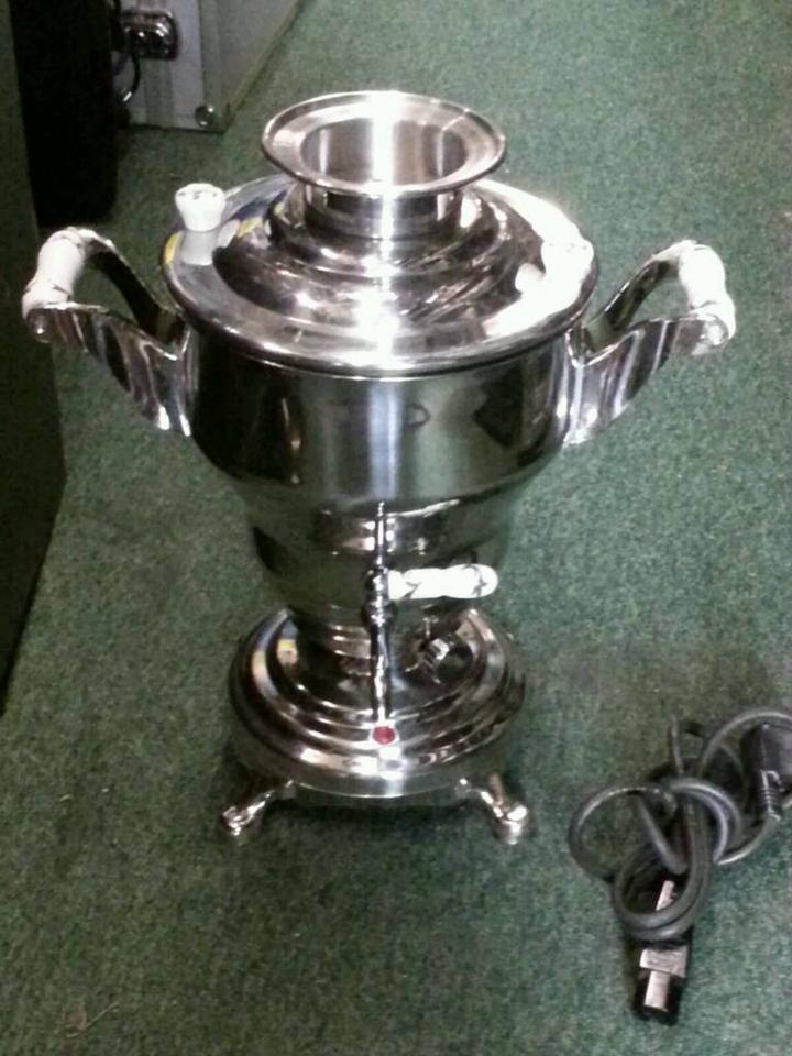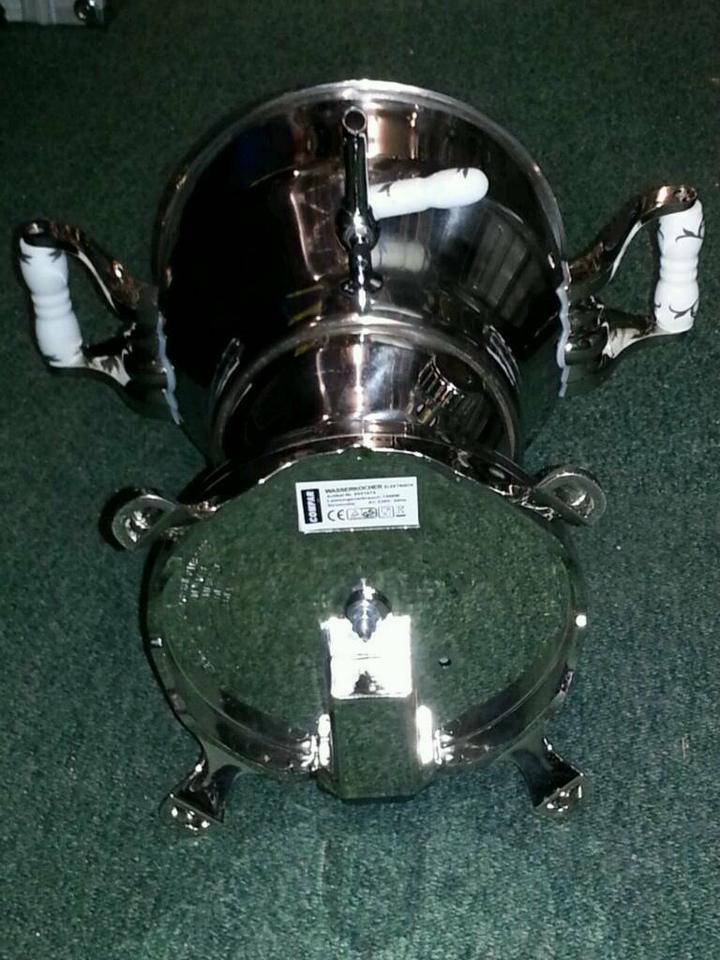 Das ist ein toller und schöner Wasserkocher/Samowar. Elektrisch, mit einem Original-Netzkabel. Edelstahl.
