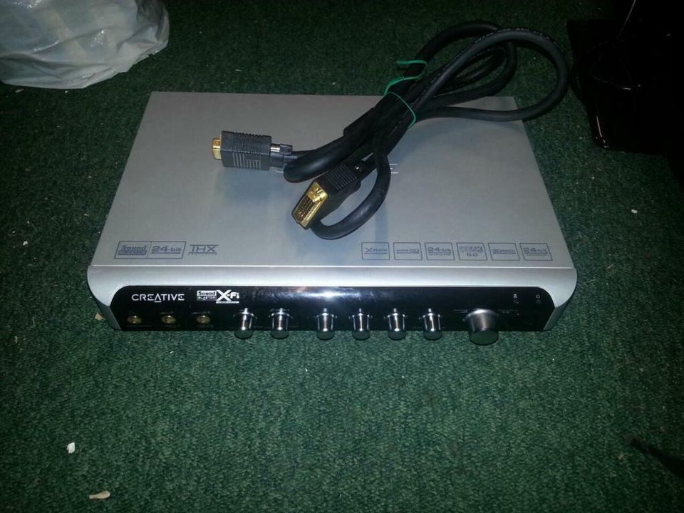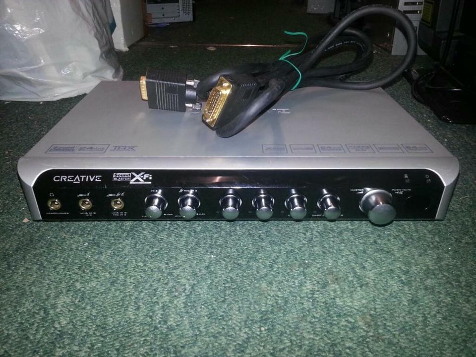Ein tolles und einwandfrei funktionierendes Gerät. Der Creative Soundblaster X-Fi sieht gut aus. Hat nur leichte Gebrauchsspuren. Mit einem Kabel.