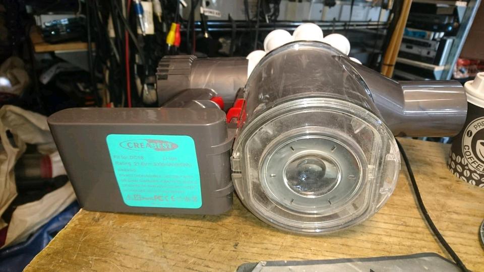 Dies ist ein toller und schöner Akku-Staubsauger von DYSON. Er funktioniert sehr gut. Mit einem NEUEN Akku, einen NEUEN Adapter + Zubehör!!