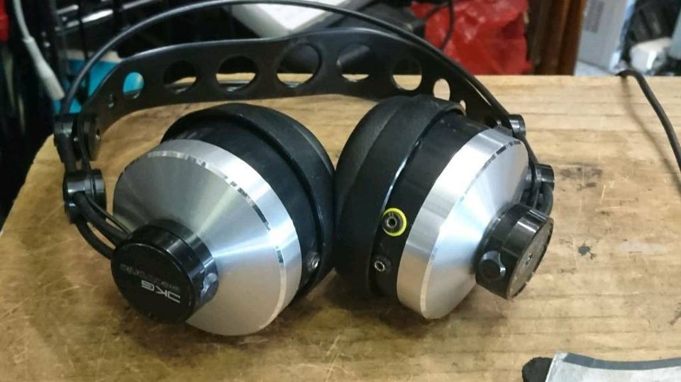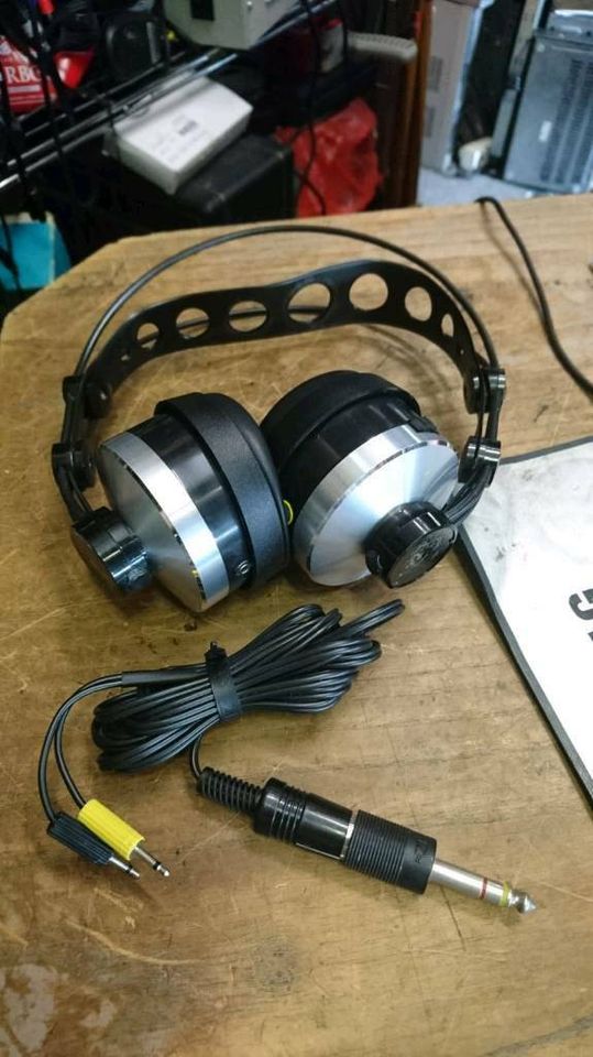 Dies sind Kopfhörer von JKG Electronic. Die Kopfhörer sind SELTEN! Funktionieren sehr gut. Ohrpolster sind vorhanden und in Ordnung. Original-Kabel mit 5poligen Stecker, Adapter von 3,5 mm auf 6,3 mm Klinkestecker, Originalkarton und Beschreibung!!