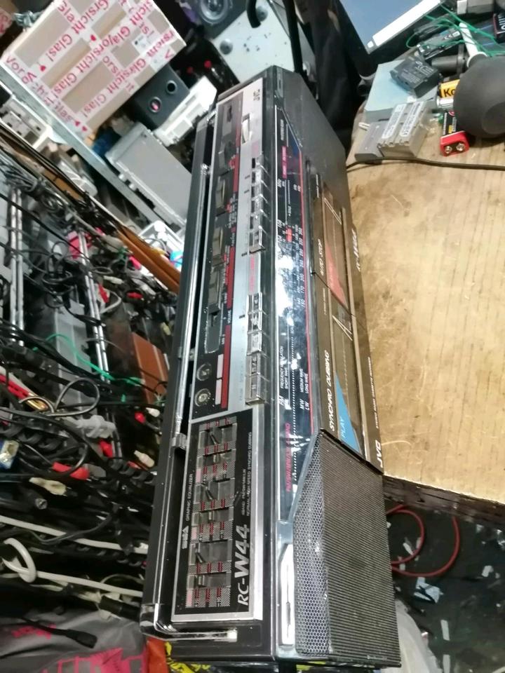 Das ist ein Stereo Radio-Cassetten-Recorder von JVC. Funktioniert sehr gut. Mit einem Netzkabel.