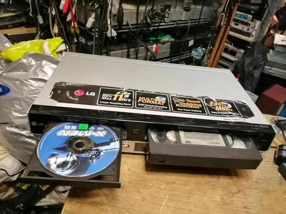 Dies ist ein toller DVD-Recorder/Videocassettenrecorder von LG. Funktioniert sehr gut. Mit einem Netzkabel und einer Fernbedienung (nicht Original) Die wichtigsten Funktionen gehen.