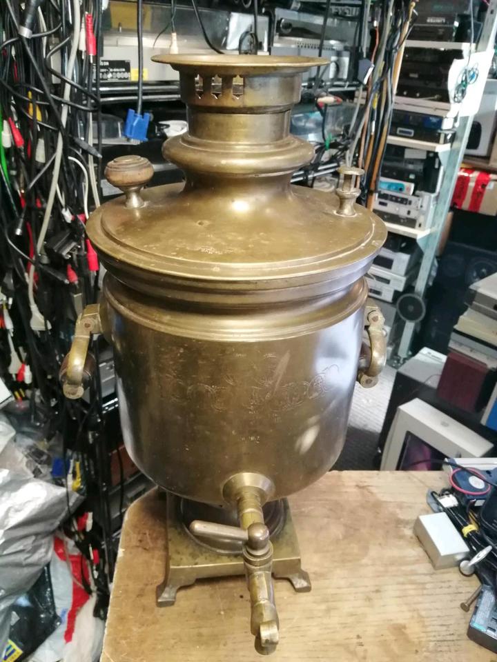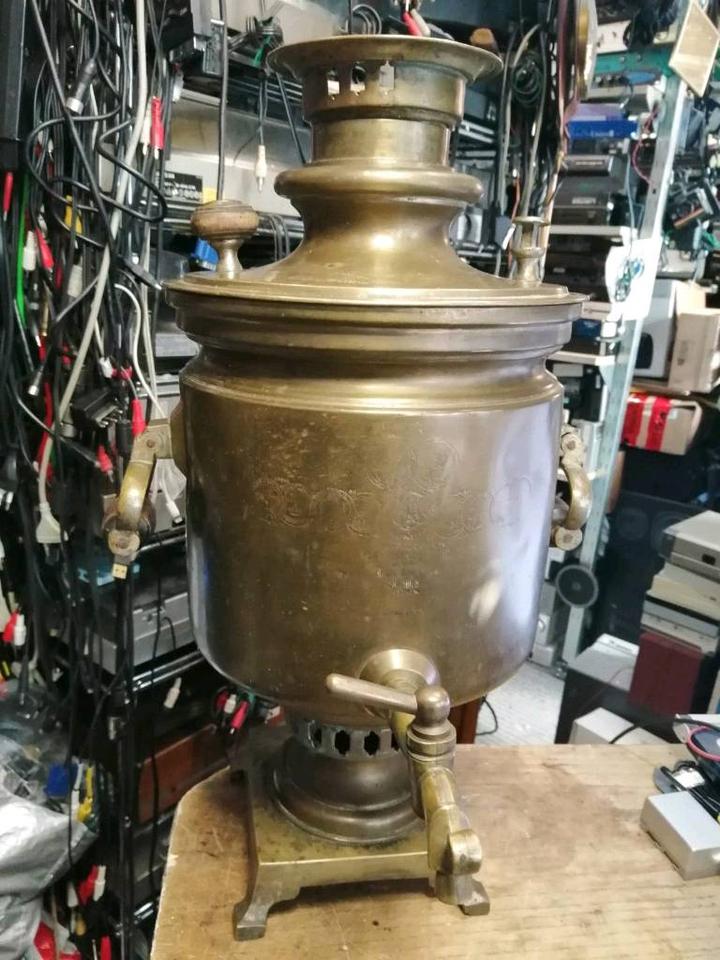 Dies ist ein russischer Holzkohle-Samowar. Baujahr: 1907. Hat viele Stempel/Prägungen!