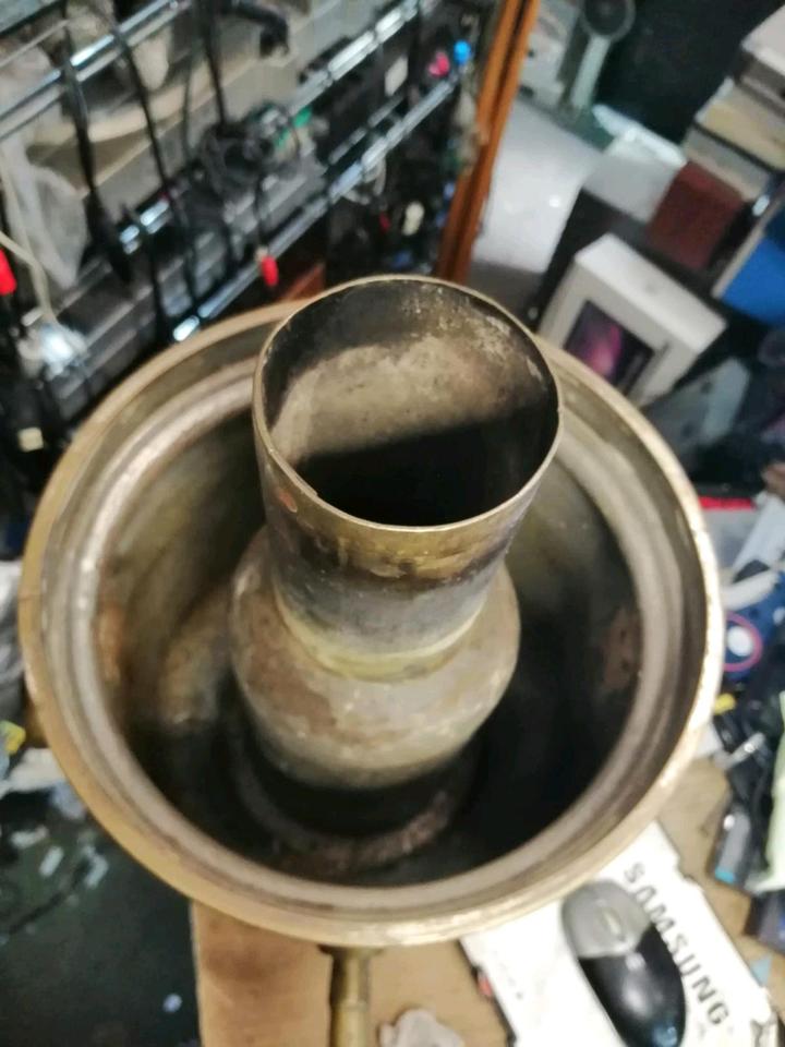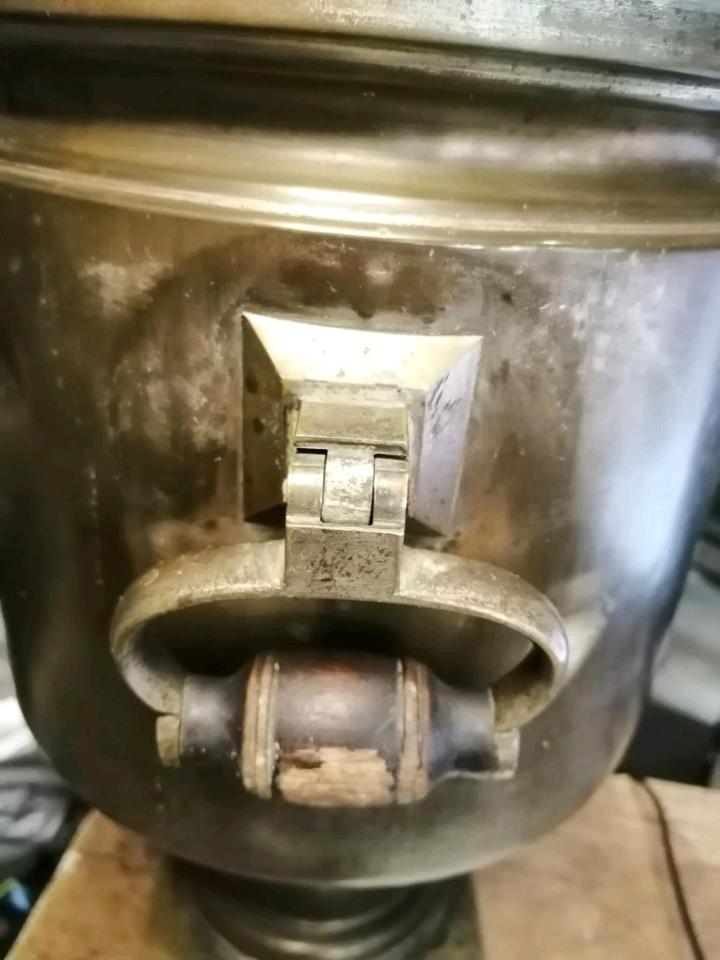 Der Samowar sieht insgesamt gut aus. Hat aber einige Gebrauchsspuren. Z. B. 2 Dellen.