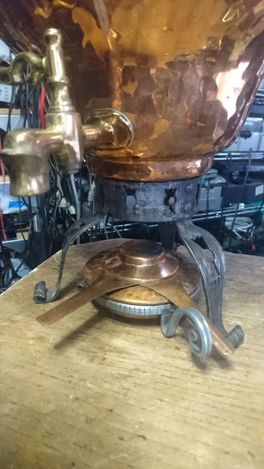 Der schöne Samowar sieht insgesamt gut aus. Hat nur leichte Gebrauchsspuren.