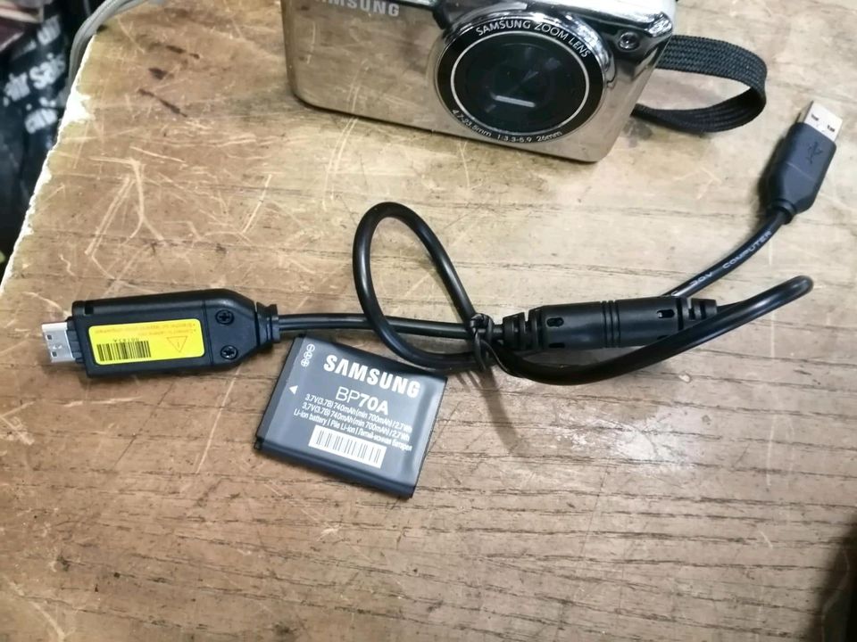 Eine tolle Digital-Kamera von SAMSUNG. Diese funktioniert sehr gut. Mit einem Original-Akku, ein NEUES Ladekabel und eine Tasche!!