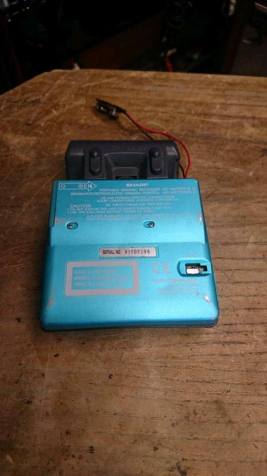 Dies ist ein kleines, aber feines Gerät von SHARP. Der portable Minidisc-Recorder funktioniert sehr gut. Nur der "hold" Schalter fehlt(siehe letztes Foto). Ist aber trotzdem bedienbar.