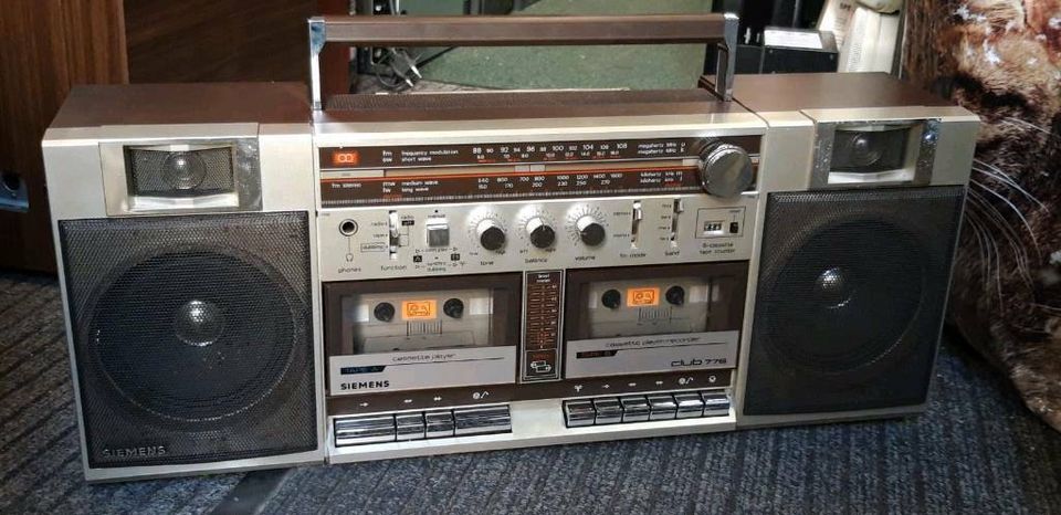 Ein toller Doppelcassetten-Recorder von SIEMENS. Radio funktioniert sehr gut. Antenne ist vorhanden und in Ordnung, Batteriefach ist sauber.
