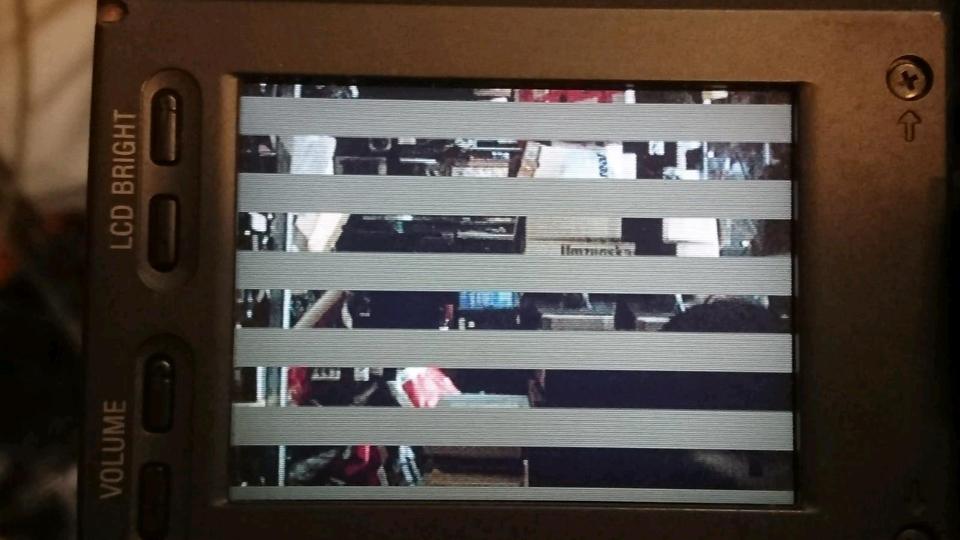 Eine Digital MiniDV-Videocamera von SONY. Cassette ging rein, dann aber nicht mehr. Klappe geht aber auf. Bildwiedergabe(vom Band) - siehe letztes Foto!!