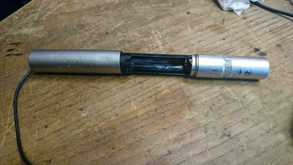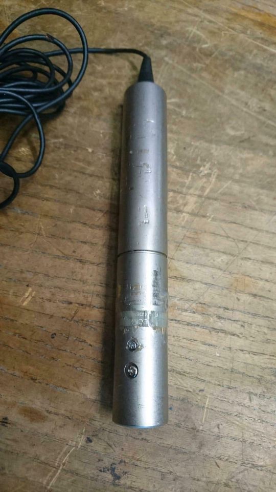 Das ist ein ein Electret Condenser Mikrofon von SONY. Das Mikrofon funktioniert sehr gut. Leider ist eine Batterie ausgelaufen und ich musste das Gehäuse mit "Gewalt" öffnen. Deshalb habe das Mikrofon einige mittelstarke Gebrauchsspuren (siehe Fotos)