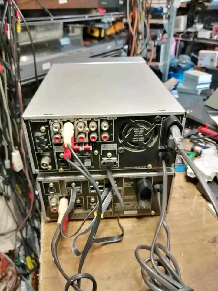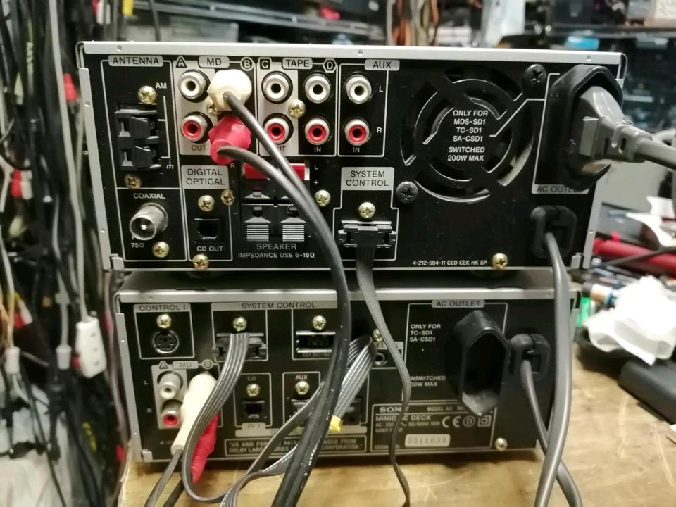 Dies eine tolle Anlage von SONY: HCD-SD1 CD Receiver und MDS-SD1 MiniDisc-Deck. Alles funktioniert sehr gut!! Haben je ein festes Kabel und Verbindungs-Verlängerungskabel.