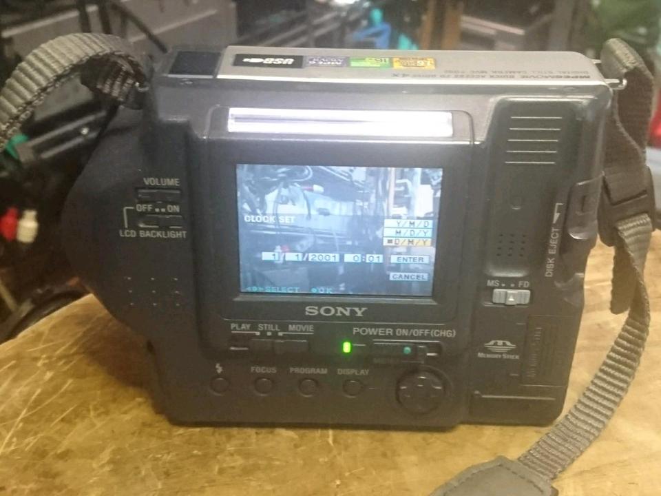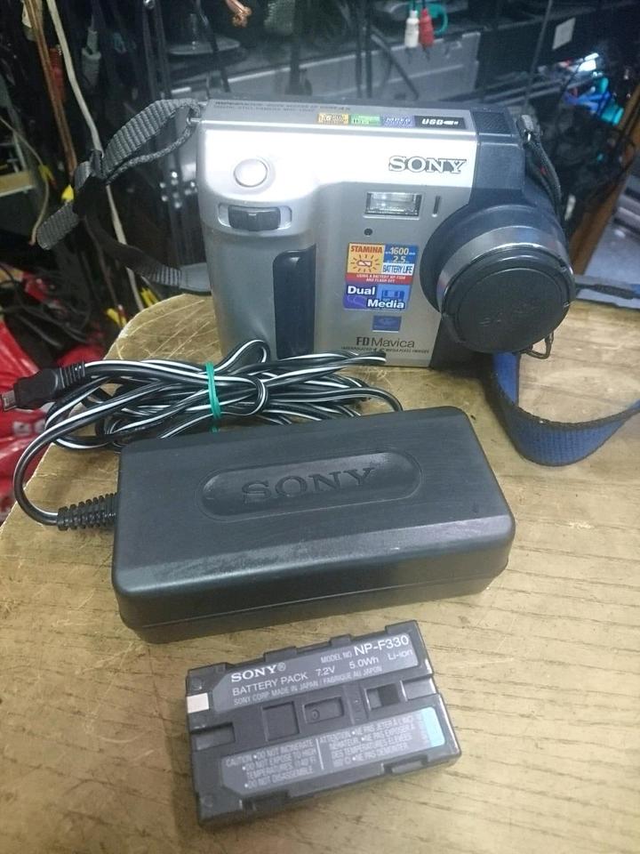 Dies ist eine tolle Disketten-Kamera von SONY. Funktioniert sehr gut. Mit einem Original-Ladegerät und einem Original-Akku.