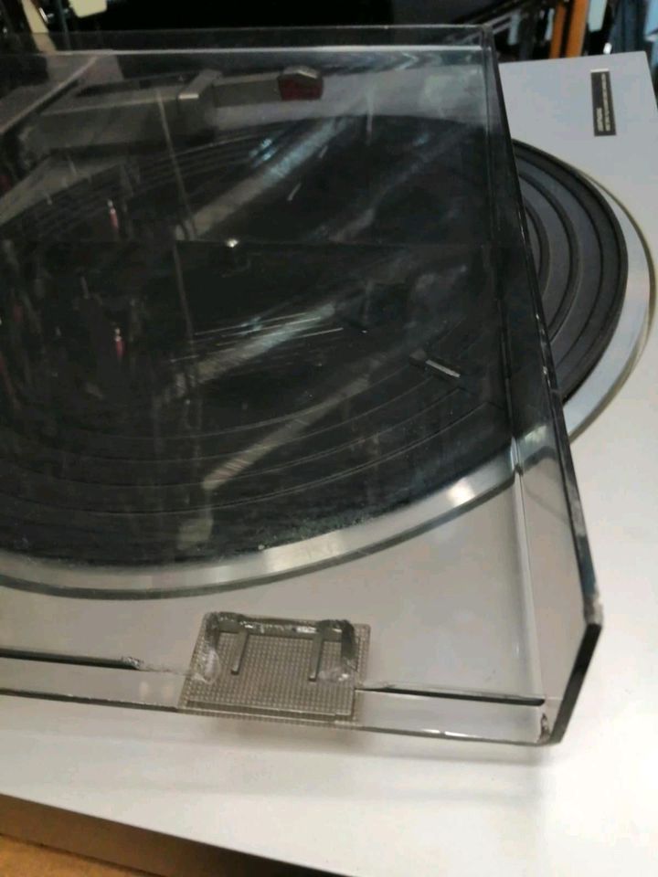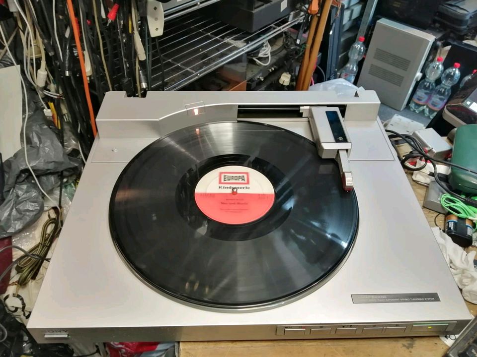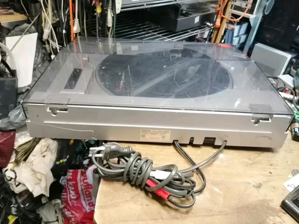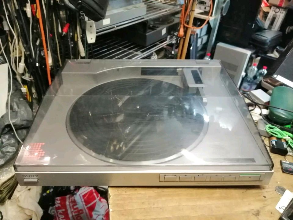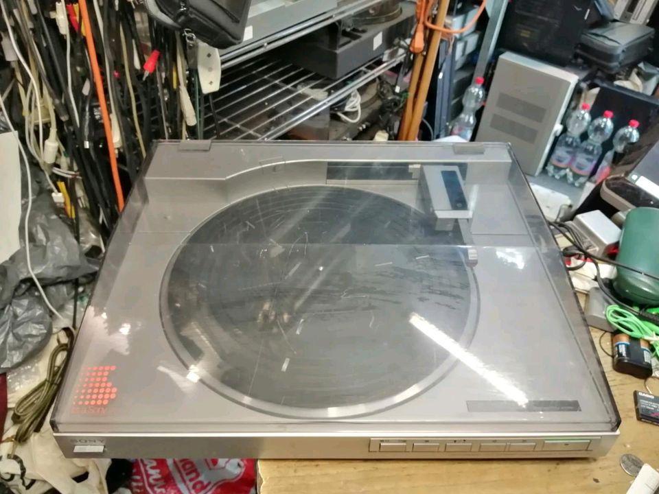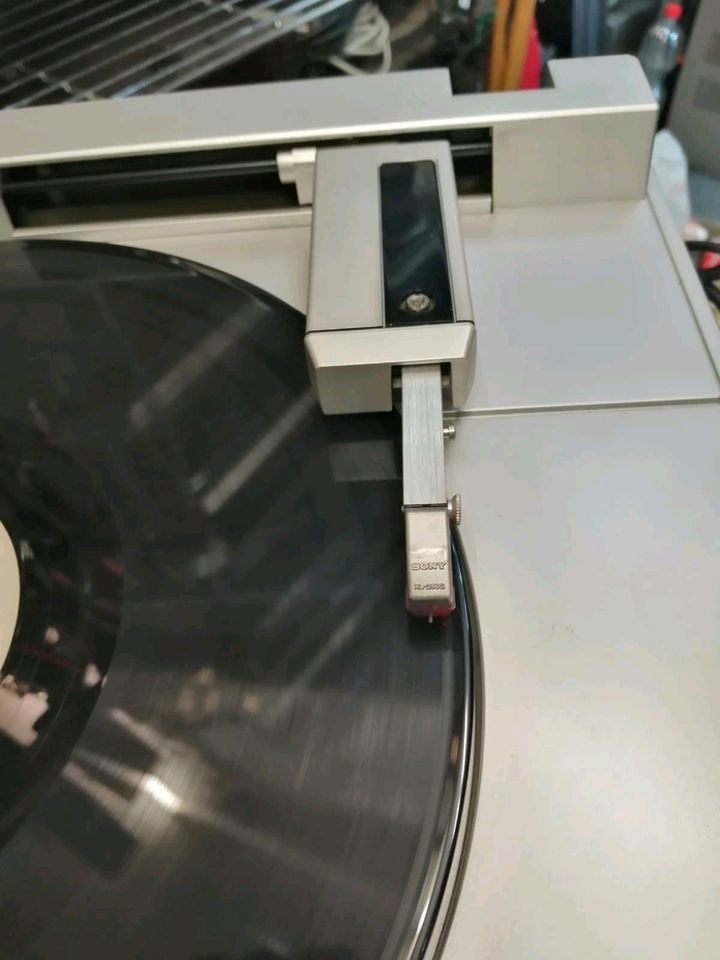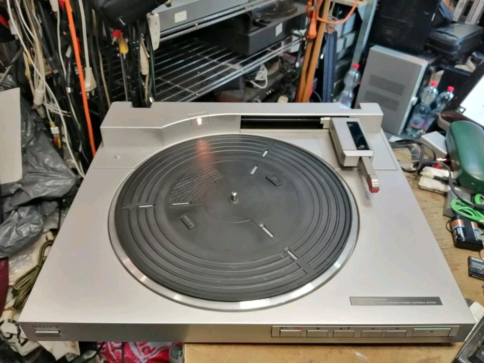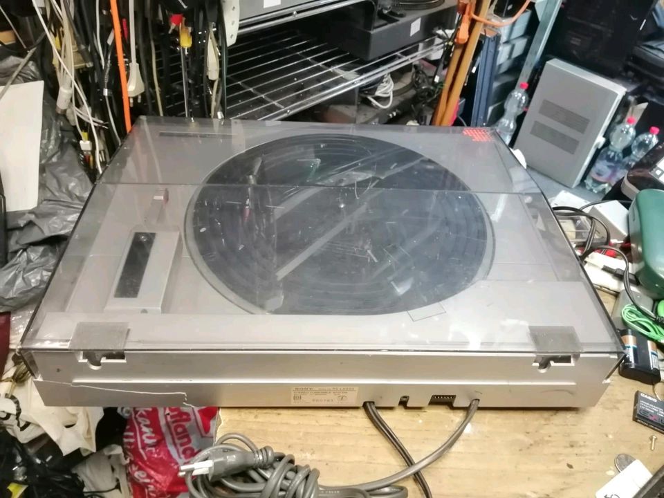 Das ist ein toller Plattenspieler von SONY mit SONY XL-250G Nadelsystem!! Hat ein festes Kabel und ein festes Cinch-Kabel. Hinten am Gehäuse ist ein Riß - siehe Fotos!! Der Deckel ist vorhanden, aber hat KEINE Scharniere!!
