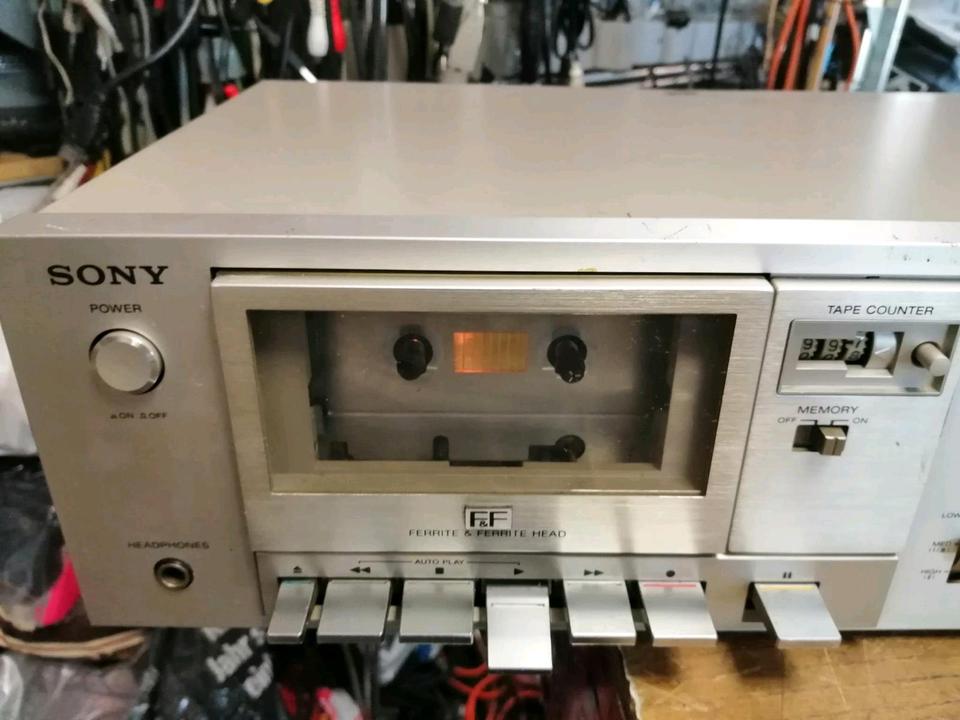 Dies ist ein Tapecorder von SONY. Vor- und Rücklauf funktionieren. Die PLAY - Taste geht NICHT! Bleibt gedrückt.