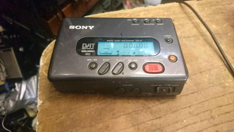 Ein Digital Audio Tape Corder von SONY. Das Gerät geht an, PLAY geht aber nur ein paar Sekunden. Geht alleine wieder aus. Das immer wieder.
