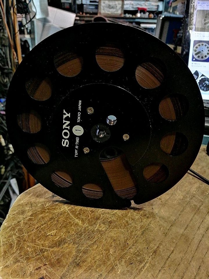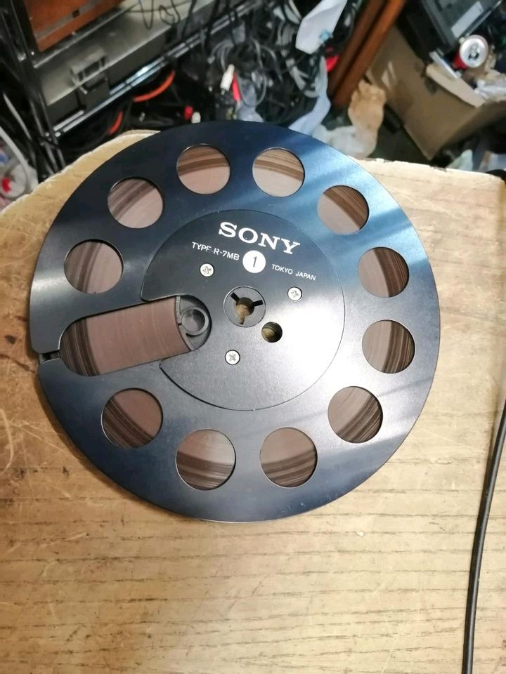 Eine gebrauchte, aber tolle Spule/Band von SONY. Metall. 18 cm Durchmesser.