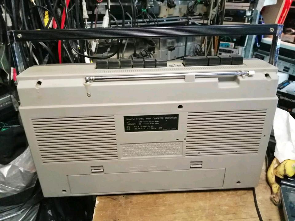 Der Radio-Cassettenrecorder sieht insgesamt gut aus. Hat nur leichte Gebrauchsspuren.