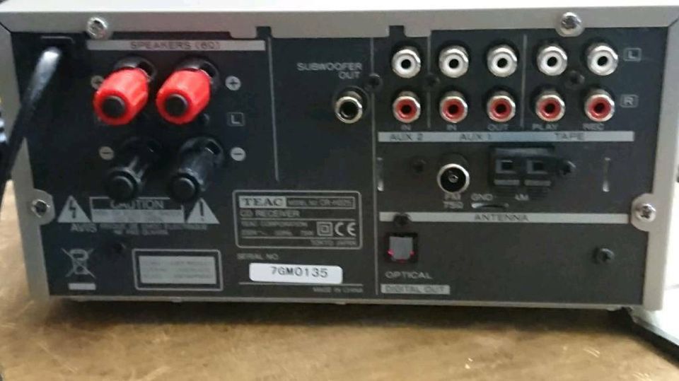 Dies ist ein tolles Gerät von TEAC. CD, Tuner, Verstärker in einem. Funktioniert sehr gut. Hat ein festes Kabel.