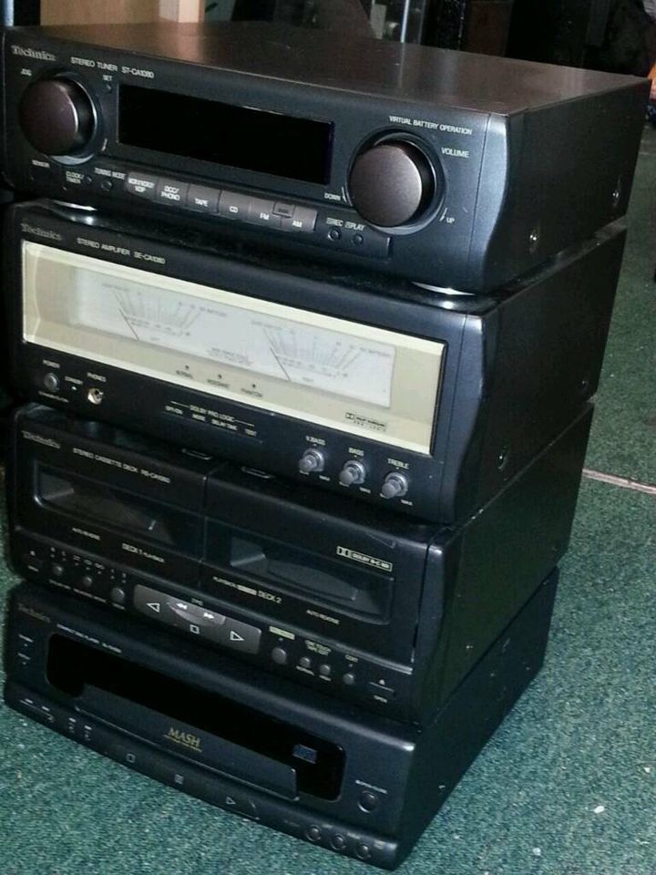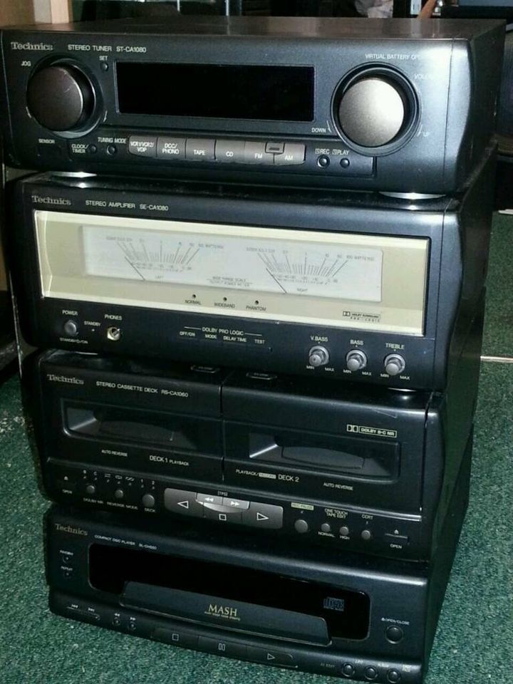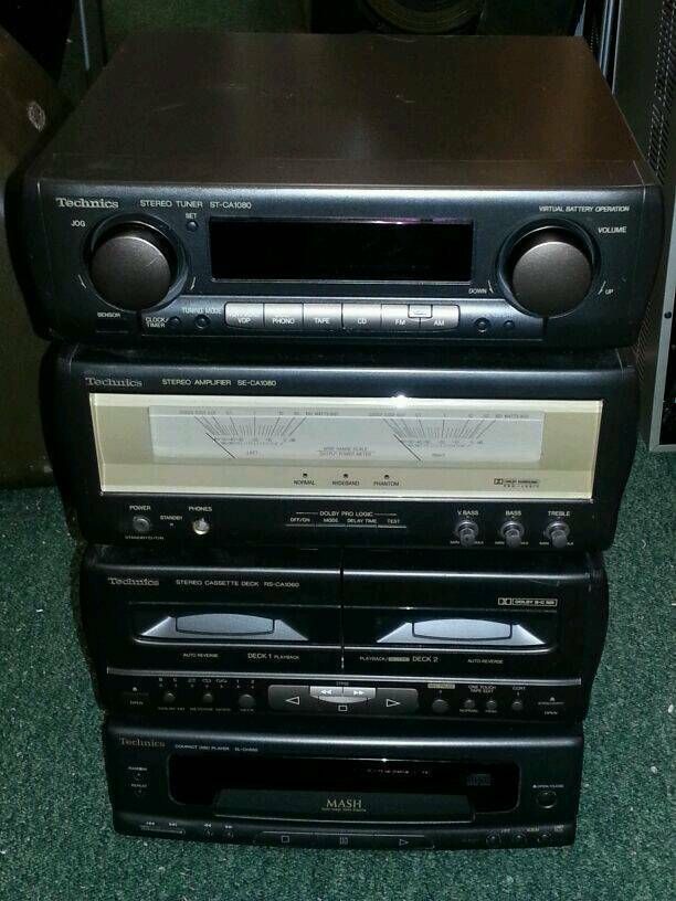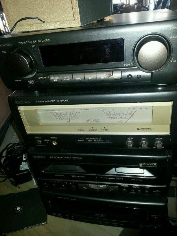 Eine schöne und tolle Musik-Anlage von TECHNICS. Die Anlage/Geräte funktionieren sehr gut. Amplifier SE-CA 1080; Tuner SE-CA 1080; Cassetten-Deck RS-CA 1060 und CD-Player SL-CH 550. Die tollen Geräte sehen gut aus.