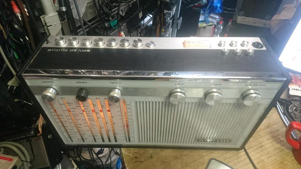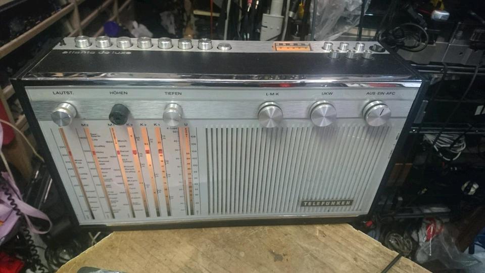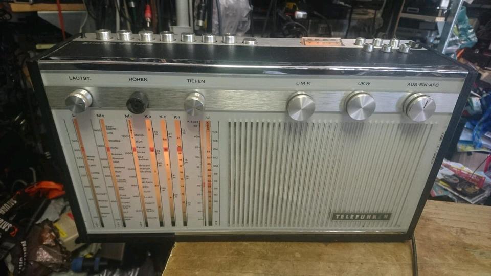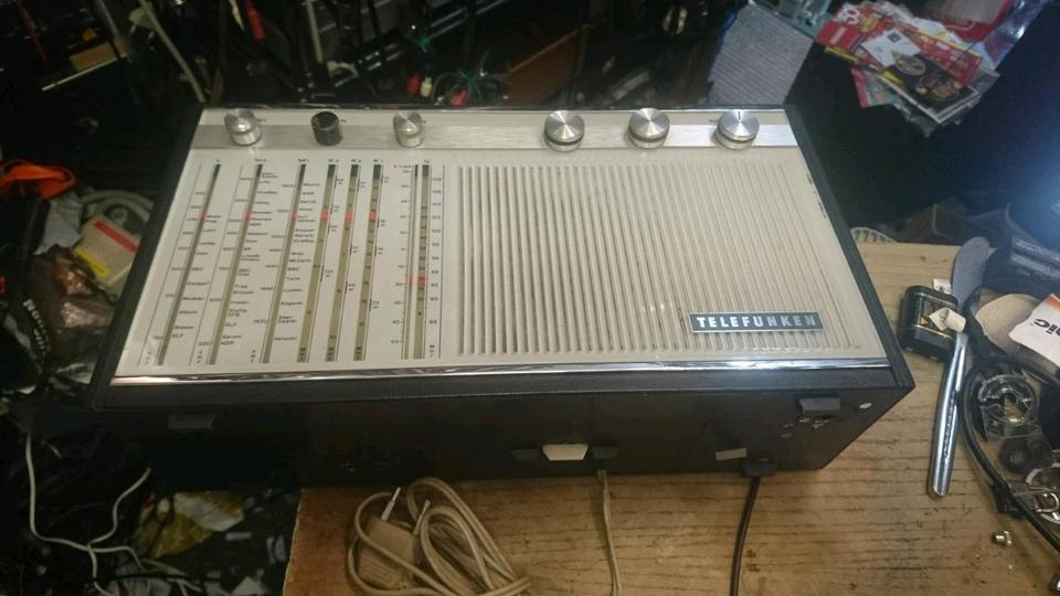 Das ist ein Radio von TELEFUNKEN. Funktioniert sehr gut. Obwohl die Antenne fehlt! Beleuchtung funktioniert. Batteriefach ist sauber. Hat ein festes Kabel.